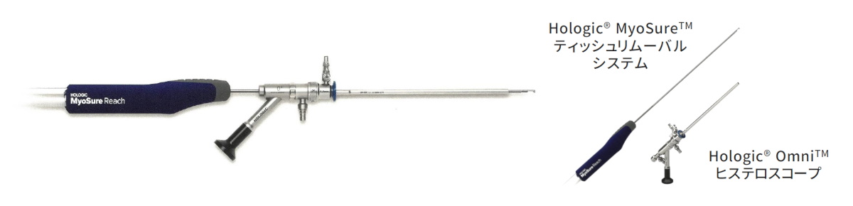 当院では、2025年7月にHologic®社の「OmniTM ヒステロスコープ」という太さが非常に細い硬性子宮鏡を導入しました。径の太さが3~6mmと細いため、患者さんへの負担軽減が期待できます。この機器に「MyoSureTM ティッシュリムーバルシステム」という病変を切除する機器を組み合わせて手術を行います。従来のものと違い、電気メスを用いない非通電性のため、子宮内膜への熱損傷がなく、子宮の機能を温存しながら治療することが可能です。