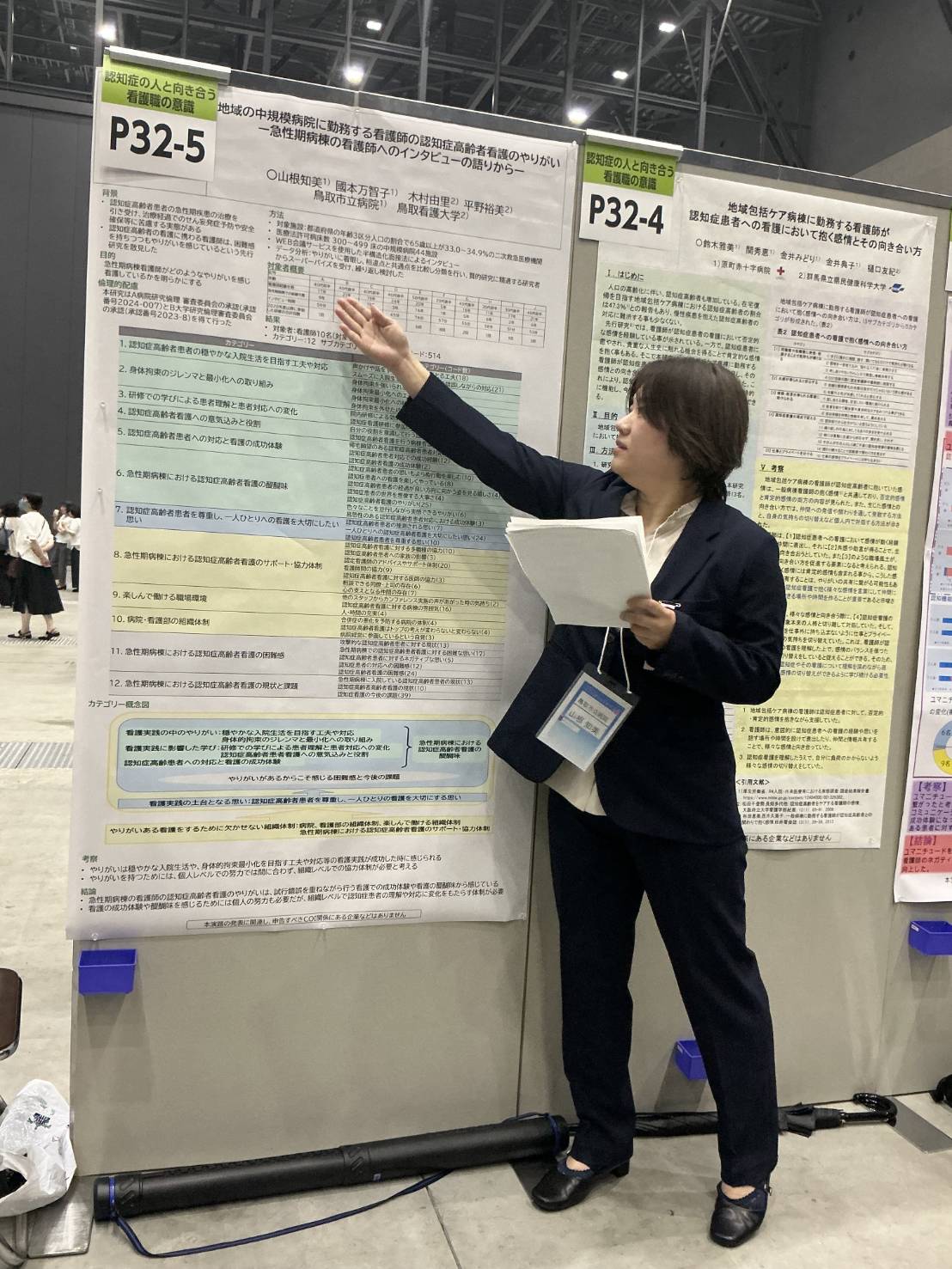 当院と鳥取看護大学の共同研究として「地域の中規模病院に勤務する看護師の認知症高齢者看護のやりがい~急性期病棟の看護師へのインタビューの語りから~」と題してポスター発表いたしました。