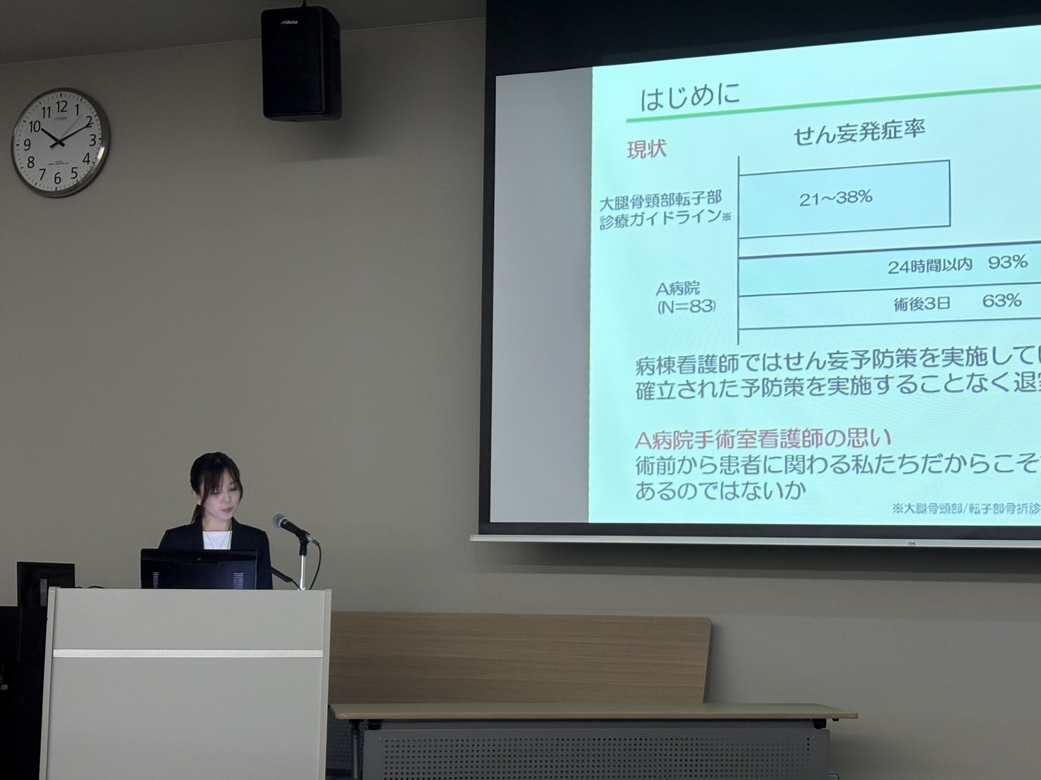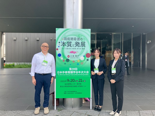 第39回日本手術看護学会年次大会が9月20日、21日に宮城県で開催されました。手術室から「手術室看護師が行う術後せん妄予防ケアの複合的介入の有効性~大腿骨骨折患者に対するかかわり~」と題して口演発表いたしました。手術室看護師のせん妄予防ケアが有効であったことを参加者と共有し、関心を寄せる肯定的な意見を多数頂きました。